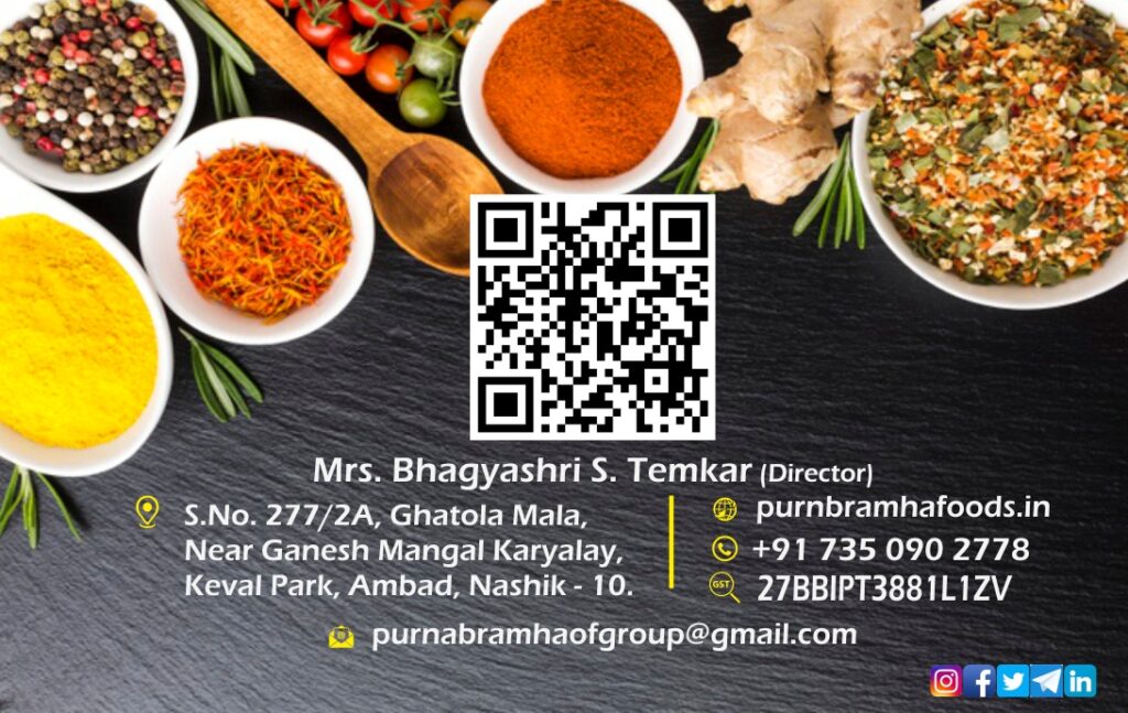 Today we are happy to say that 99% are Purnabramha’s repeat customers. Purnabramha is the manufacturer of the best quality Spices, Ready to cook products, Dehydration Product to the B2B as well as B2C customers at our affordable price. Maintaining Quality and Standards Purnabramha working on this principals.
